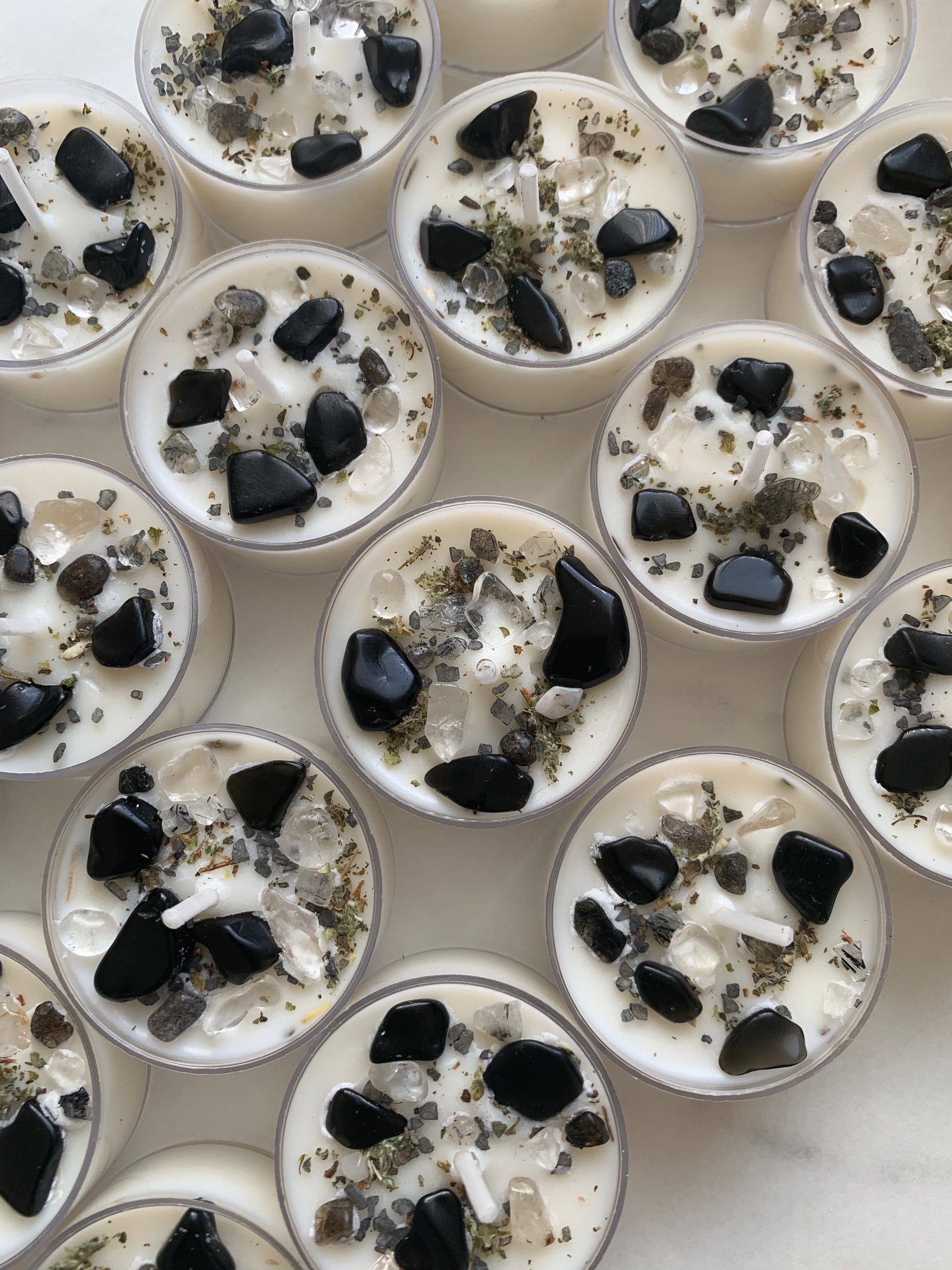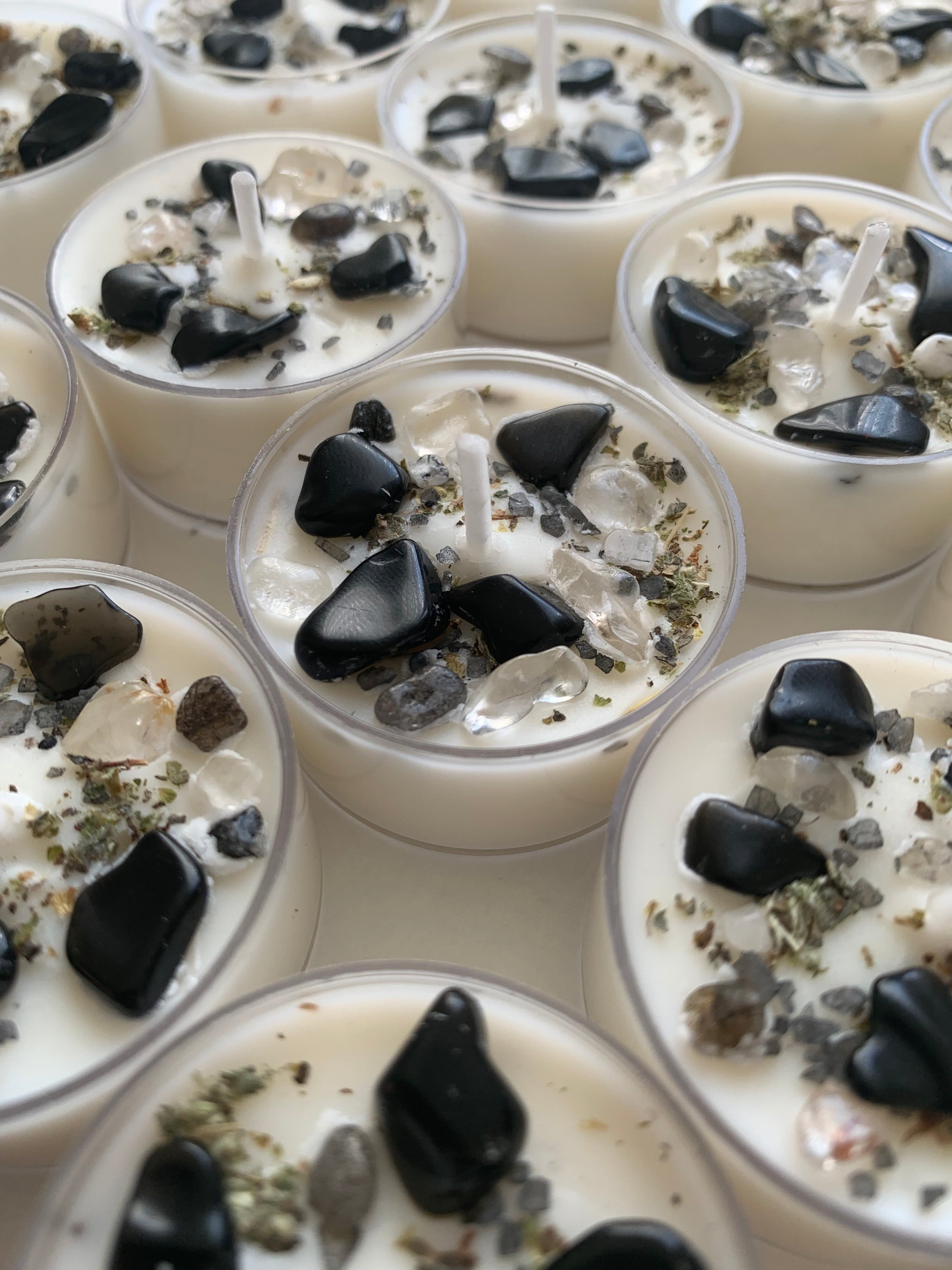 Protect your space, spirit, and energy with my Protection Tealight Candle. Each tealight is lovingly handcrafted with intention, infused with herbs and oils traditionally used for shielding, banishing negativity, and spiritual safety. THIS COMES IN A SET OF 4 TEALIGHT CANDLES.